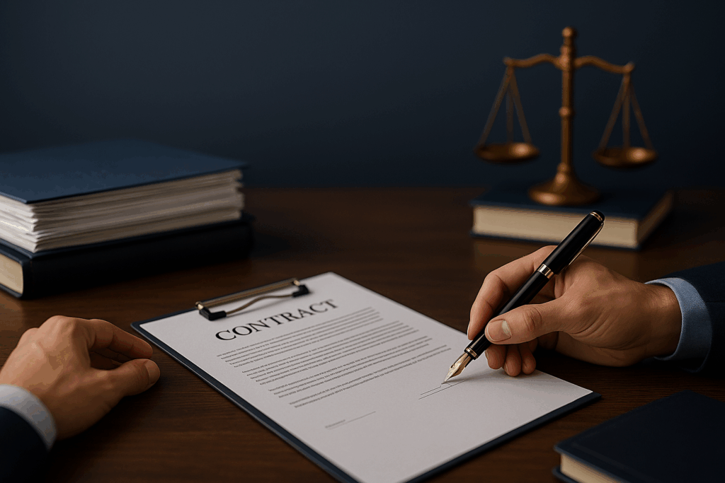 Com a proposta aceita, você assina o contrato formal. O documento detalha: